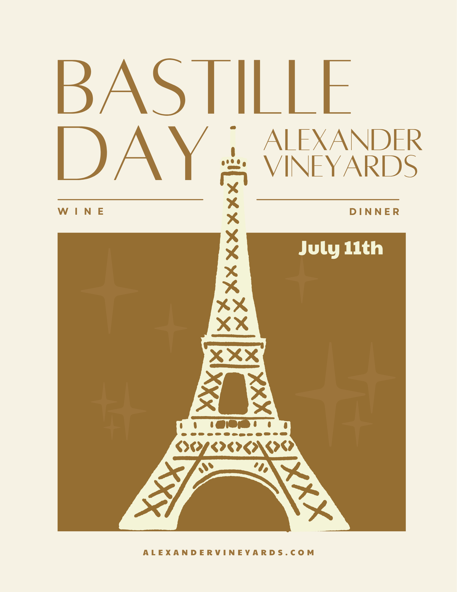 Join us for a celebration of Bastille Day at the tasting room, featuring our finest French wines and a sit down gourmet dinner!